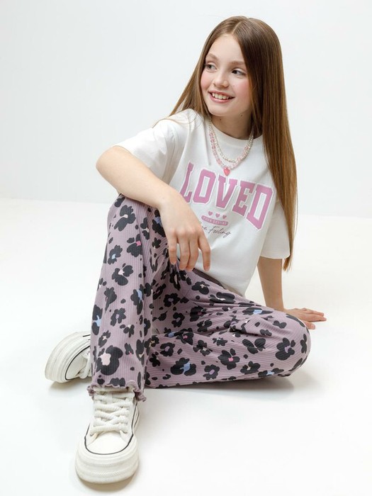 Брюки из эластичного трикотажа в рубчик для девочки. Мягкий пояс на резинке идеально садится по фигуре. Оригинальный рисунок выполнен из стойких текстильных гипоаллергенных красителей. Изделие сохраняет цвет и форму после многократных стирок. Все трикотажные полотна производятся в соответствии с нормами швейцарского сертификата ЭкоТекс.