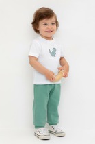 Свободные брюки для мальчика из петельчатого футера. Эластичный пояс на резинке регулируется по ширине с помощью шнурка, внизу эластичные манжеты.