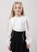 Джемпер для девочки из высококачественного петельчатого футера. Обтачка горловины, манжеты и пояс выполнены из эластичного полотна.
