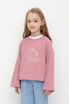 Укороченная толстовка с расклешенными рукавами и принтом для девочки из высококачественного петельчатого футера . Обтачка горловины выполнена из эластичного полотна.Оригинальный принт выполнен из стойких текстильных красителей.
