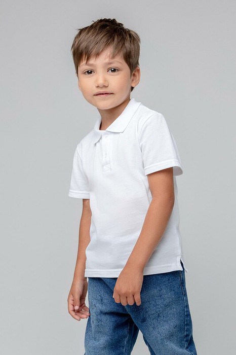 Джемпер поло с короткими рукавами для мальчика из трикотажного  полотна пике. Вязаный воротник. Удобная застежка спереди. По бокам разрезы, обработанные киперной лентой.