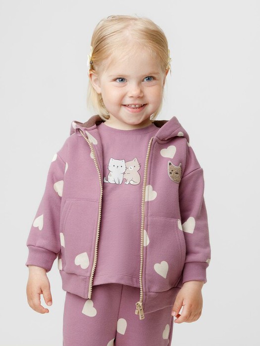 Crockid джемпер (толстовка) д/дев яс КР 302824/темная орхидея,сердечки к589