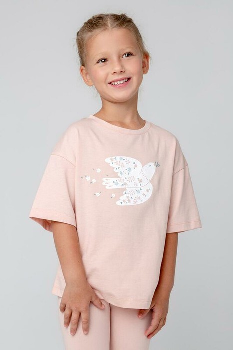Футболка для девочки из высококачественного трикотажного полотна. Оригинальный принт выполнен из стойких текстильных гипоаллергенных красителей.