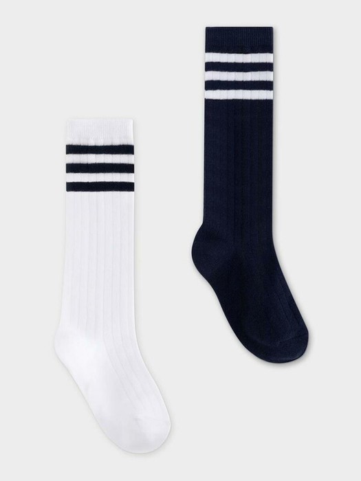 Гольфы для девочки с эластичной резинкой по верхнему краю. Украшены рисунком в полоску. В комплекте 2 пары.