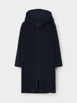 Однотонный махровый халат для мальчика на запахе без начёса. Капюшон с мягким подкладом украшен аппликацией с изображением мишки и объёмными ушками. Пояс продет в петли. На груди дополнительная застёжка на две кнопки. По бокам удобные карманы. Рукава и края изделия обработаны кантом.