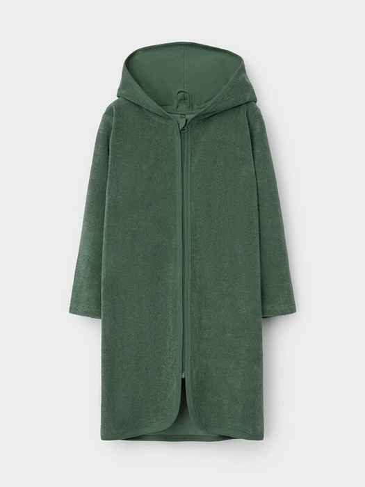 Халат на молнии с капюшоном. Изготовлен из мягкого махрового полотна, произведённого из натурального хлопка. В капюшоне подклад из высококачественного гладкого трикотажа супрем. Края обработаны эластичным кантом. Все трикотажные полотна производятся в соответствии с нормами швейцарского сертификата ЭкоТекс.