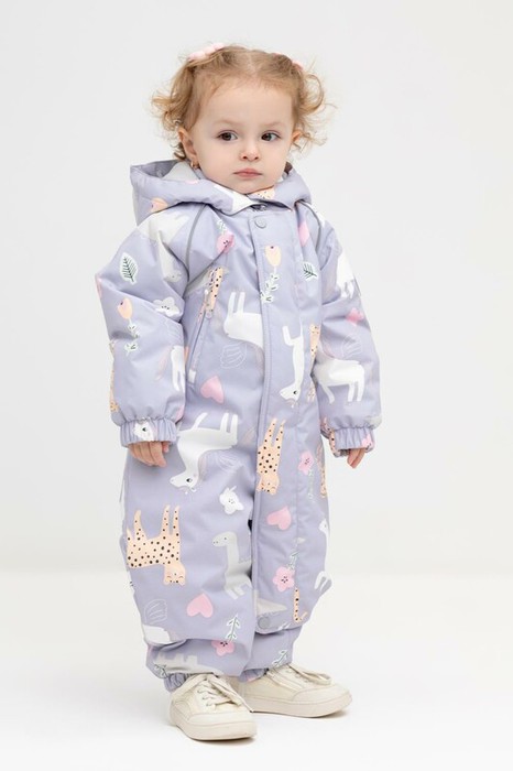 Демисезонный комбинезон ясельный с утеплителем Слайтекс Найс® 120 г/м2. Выполнен из мембранной ткани с дополнительной тефлоновой обработкой. Данный вид обработки предохраняет изделие от загрязнения и лучше отводит влагу. Подклад из 100% хлопка. Удлиненная молния для легкого одевания с защитой подбородка. Ветрозащитная планка фиксируется на липучках и кнопках. Утяжка на капюшоне с потайными стопперами. По низу рукавов и брючин, а также на спинке изделия предусмотрена эластичная резинка для лучшего прилегания. Для фиксации комбинезона используются съемные силиконовые штрипки. В размерах 74-80 функциональные отвороты на рукавах и брючинах. Во всех изделиях верхнего ассортимента для безопасности ребенка предусмотрены светоотражающие элементы.