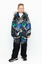 Флисовый комбинезон для мальчика с высоким воротником. Застёгивается на удлинённую молнию с мягкой защитой шеи и подбородка. Рукава и низ изделия на манжетах из  трикотажа в рубчик. Эластичная резинка по спинке обеспечивает идеальную посадку. Спереди удобный карман-кенгуру. Оригинальная набивка выполнена из стойких гипоаллергенных текстильных красителей. Комбинезон сохраняет цвет и форму после многократных стирок.