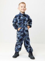 Флисовый комбинезон для мальчика с высоким воротником. Застёгивается на удлинённую молнию с мягкой защитой шеи и подбородка. Рукава и низ изделия на манжетах из  трикотажа в рубчик. Эластичная резинка по спинке обеспечивает идеальную посадку. Спереди удобный карман-кенгуру. Комбинезон сохраняет цвет и форму после многократных стирок.