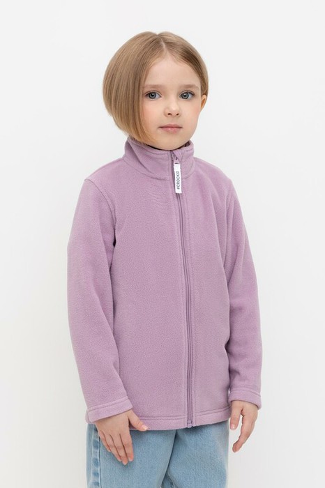 Флисовая куртка для девочки. У изделия высокий воротник, предусмотрена защита шеи и подбородка, по бокам карманы. Куртка сохраняет цвет и форму после многократных стирок.