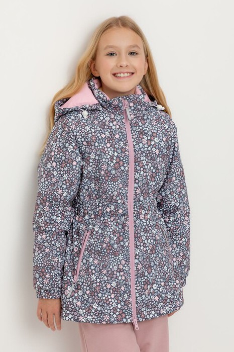 Демисезонная куртка для девочки с утеплителем SEE®: 120 г/м2. Выполнена из мембранной ткани с дополнительной тефлоновой обработкой. Данный вид обработки предохраняет изделие от загрязнения и лучше отводит влагу. Подклад из 100% полиэстера. У изделия предусмотрена защита подбородка. Несъемный капюшон регулируется с помощью эластичного шнура со стопперами. Низ рукавов и пояс изделия имеют эластичную резинку для лучшего прилегания. Во всех изделиях верхнего ассортимента для безопасности ребенка предусмотрены светоотражающие элементы.