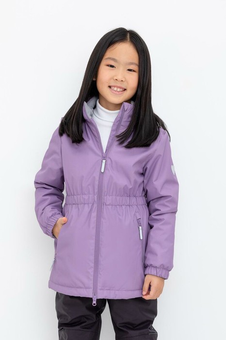Демисезонная куртка для девочки с утеплителем SEE®: 120 г/м2. Выполнена из мембранной ткани с дополнительной тефлоновой обработкой. Данный вид обработки предохраняет изделие от загрязнения и лучше отводит влагу. Подклад из 100% полиэстера. У изделия предусмотрена защита подбородка. Несъемный капюшон регулируется с помощью эластичного шнура со стопперами. Низ рукавов и пояс  изделия имеют эластичную резинку для лучшего прилегания. Во всех изделиях верхнего ассортимента для безопасности ребенка предусмотрены светоотражающие элементы.