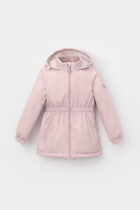 Демисезонная куртка для девочки с утеплителем SEE®: 120 г/м2. Выполнена из мембранной ткани с дополнительной тефлоновой обработкой. Данный вид обработки предохраняет изделие от загрязнения и лучше отводит влагу. Подклад из 100% полиэстера. У изделия предусмотрена защита подбородка. Несъемный капюшон регулируется с помощью эластичного шнура со стопперами. Низ рукавов и пояс  изделия имеют эластичную резинку для лучшего прилегания. Во всех изделиях верхнего ассортимента для безопасности ребенка предусмотрены светоотражающие элементы.