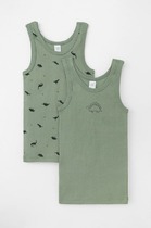 Трикотажные майки в комплекте 2 шт на тонких бретелях из однотонной рибаны, горловина и проймы обработаны кантом, по горловине полочки мережка и атласный бантик. Сохраняют цвет и форму после многократных стирок. Все трикотажные полотна производятся в соответсвии с нормами Швейцарского сертификата ЭкоТекс.