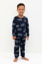 Трикотажная пижама из натурального хлопка. Джемпер с длинными втачными рукавами и брюки с эластичной резинкой в поясе. Мягкие манжеты на рукавах и по низу брюк. Оригинальная набивка и принт выполнены из стойких текстильных гипоаллергенных красителей. Изделие сохраняет цвет и форму после многократных стирок. Все трикотажные полотна производятся в соответствии с нормами швейцарского сертификата ЭкоТекс.