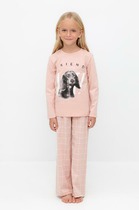 Трикотажная пижама из натурального хлопка. Джемпер с длинными втачными рукавами. У брюк в комплекте мягкий, эластичный пояс на резинке. Оригинальная набивка выполнена из стойких, гипоаллергенных текстильных красителей. Комплект сохраняет цвет и форму после многократных стирок. Все трикотажные полотна производятся в соответсвии с нормами Швейцарского сертификата ЭкоТекс.