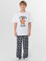 Пижама для девочки из натурального хлопка. Джемпер с длинными втачными рукавами и брюки с эластичной резинкой в поясе. Мягкие манжеты по низу брюк сделаны из материала в рубчик. Оригинальная набивка и принт выполнены из стойких текстильных гипоаллергенных красителей. Изделие сохраняет цвет и форму после многократных стирок. Все трикотажные полотна производятся в соответствии с нормами швейцарского сертификата ЭкоТекс.