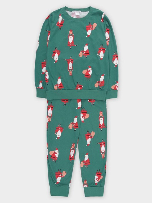 Новогодняя пижама из натурального хлопка.  Джемпер с длинными втачными рукавами и брюки с эластичной резинкой в поясе. Мягкие манжеты на рукавах и по низу брюк. Пижама отлично подойдёт для создания уютных домашних образов или в качестве подарка на Новый год и Рождество. Оригинальная набивка выполнена из стойких текстильных гипоаллергенных красителей. Изделие сохраняет цвет и форму после многократных стирок. Все трикотажные полотна производятся в соответствии с нормами швейцарского сертификата ЭкоТекс.
