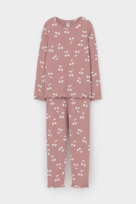 Crockid пижама для дев К 1618-1/серая пудра,крупная вишня