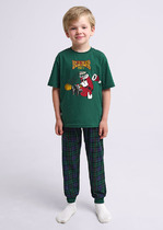 Трикотажная пижама из натурального хлопка. Джемпер с длинными рукавами. У брюк эластичный пояс на резинке. Оригинальная набивка выполнена из стойких, гипоаллергенных текстильных красителей. Пижама сохраняет цвет и форму после многократных стирок. Все трикотажные полотна производятся в соответсвии с нормами Швейцарского сертификата ЭкоТекс.