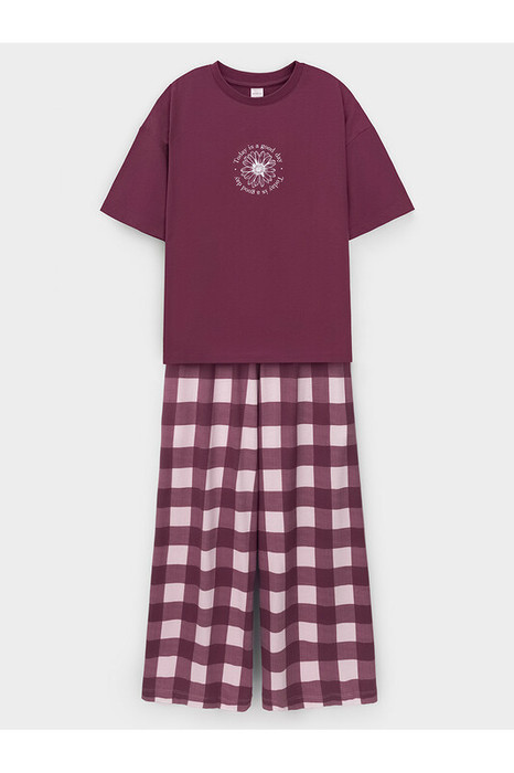 Комплект для комфортного сна и отдыха из гладкого трикотажного полотна. Футболка с короткими спущенными рукавами и прямые брюки с мягкой эластичной резинкой в поясе, которые удобно садятся по фигуре. Лёгкий материал приятен к телу, не теряет форму и позволяет коже дышать. Все трикотажные полотна производятся в соответствии с нормами швейцарского сертификата ЭкоТекс.