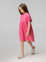 Нарядное платье для девочки из высококачественного трикотажа супрем с лёгким слоем из сетки с золотыми блёстками. Длинные рукава из сетки собраны на резинку. Для удобства одевания платье застёгивается на пуговицу на спинке. Платье сохраняет форму и стойкий цвет после многочисленных стирок и идеально подходит для праздников и фотосессий.