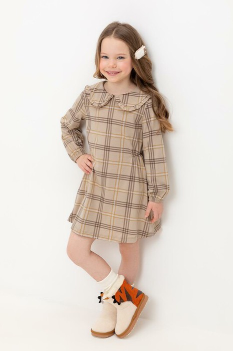 Совместные покупки Пермь Детская одежда Платья — Crockid платье для дев КР 5890/тем.бежевый,текстильная клетка к493
