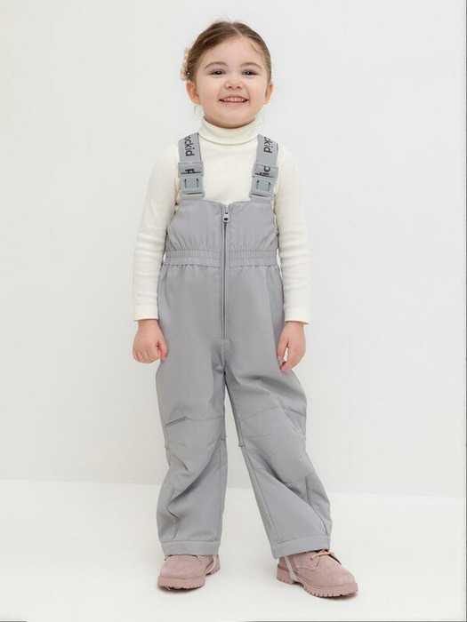 Демисезонный полукомбинезон детский с утеплителем 60г/м2. Выполнен из мембранной ткани с дополнительной тефлоновой обработкой. Данный вид обработки предохраняет изделие от загрязнения и лучше отводит влагу. Подклад из 100% полиэстра. Эластичные лямки для удобства регулируются по длине. Область коленей дополнительно усилена деталями из основной ткани. Низ на резинке, регулируется по ширине при помощи липучки. Для фиксации полукомбинезона используются съемные силиконовые штрипки. Во всех изделиях верхнего ассортимента для безопасности ребенка предусмотрены светоотражающие элементы.