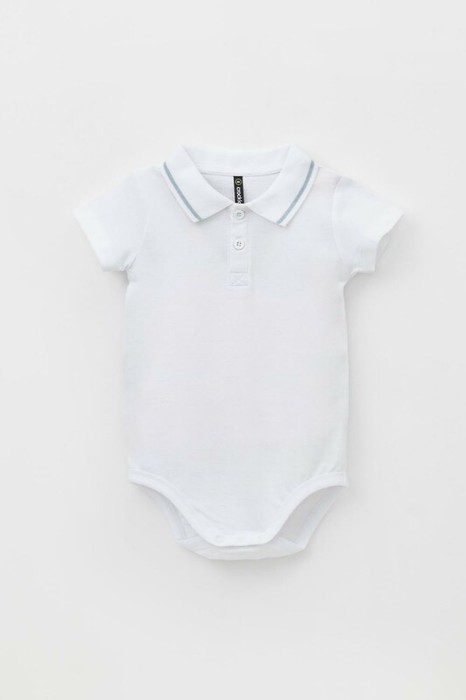 Боди для мальчика из трикотажного полотна пике. Вязаный воротник. Удобная застежка спереди.