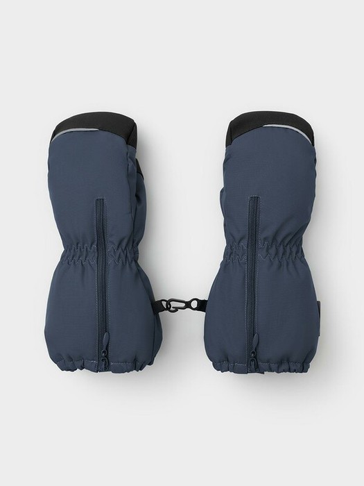 Детские утеплённые рукавицы из однотонной мембранной ткани со вставками из искусственной кожи. Удлинённые манжеты на молнии. Мягкий подклад из флиса. Пластиковый карабин для скрепления рукавиц между собой. Светоотражающие элементы.