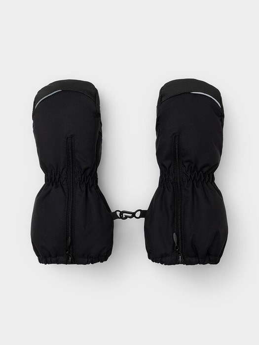Детские утеплённые рукавицы из однотонной мембранной ткани со вставками из искусственной кожи. Удлинённые манжеты на молнии. Мягкий подклад из флиса. Пластиковый карабин для скрепления рукавиц между собой. Светоотражающие элементы.