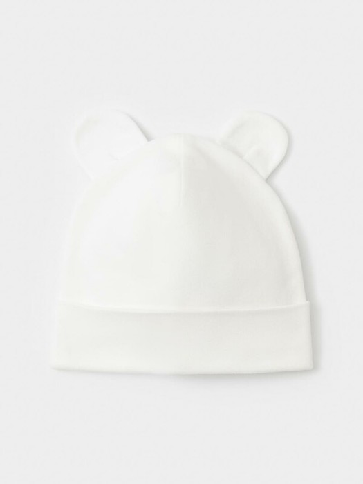Шапка с отворотом для новорождённых из мягкого эластичного трикотажа интерлок, произведённого из натурального хлопка. Украшена декоративными ушками. Все трикотажные полотна производятся в соответствии с нормами швейцарского сертификата ЭкоТекс.