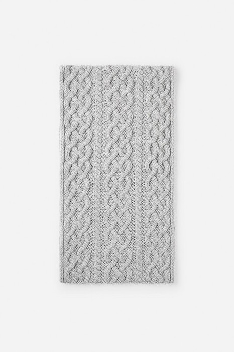 Стильный снуд из полушерсти с вязаным узором из кос. Защитит горло и согреет ребёнка во время прогулки.