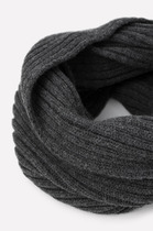 Однотонный снуд из полушерстяной пряжи для девочки, украшен вывязанными косами.