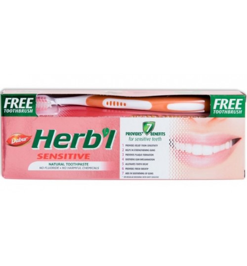 Dabur Herbl Sensitive Natural Toothpaste with Toothbrush 150g / Аюрведическая Зубная Паста для Чувствительной Эмали Натуральная + Зубная Щётка Ср. Жесткости 150г