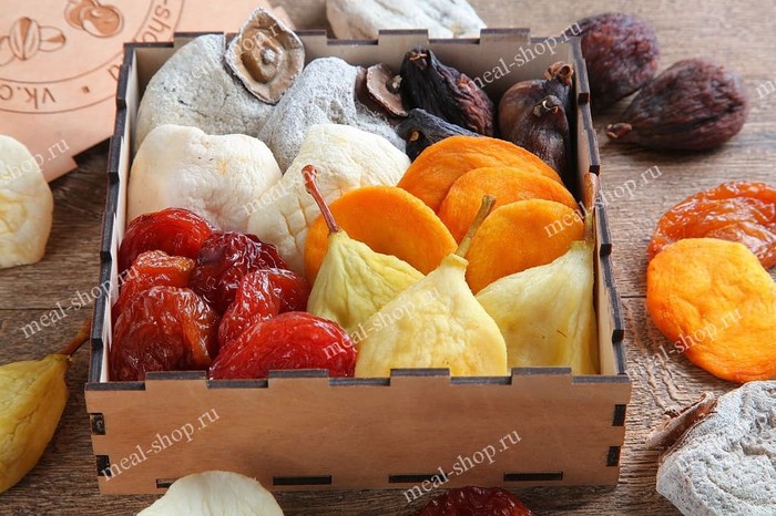 Совместные покупки Пермь Продукты Сухофрукты, орехи, снеки — Деревянный бокс Mini "Сухофрукты из Армении АССОРТИ" 450 грамм