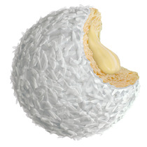 Бисквит на основе миндаля, прослоенный нежным сливочным кремом, с хрустящей карамелью, декорированный молочным шоколадом.