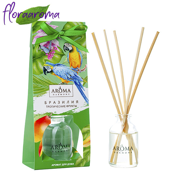 Аромадиффузор не только наполняет комнату приятным ароматом, но также является стильным аксессуаром, который заинтересует ваших гостей. Также можно использовать такой аксессуар в качестве подарка. Флакона объемом 30 мл хватит на помещение площадью до 15 кв.м. Срок службы диффузора от 1,5 до 2 месяцев в зависимости от места использования. В более влажных помещениях срок использования сокращается. Чтобы наслаждаться потрясающим ароматом, необходимо просто поставить палочки во флакон и дождаться, пока аромат полностью наполнит пространство вокруг. Палочки важно применять сразу все и периодически переворачивать, чтобы поддерживать уровень ароматизации на должном уровне (1-2 раза в сутки). Палочки входят в комплект. Ноты аромата: бергамот, ананас, свежие ноты, маракуйя, дыня, ваниль, бобы тонка, кокос, манго.