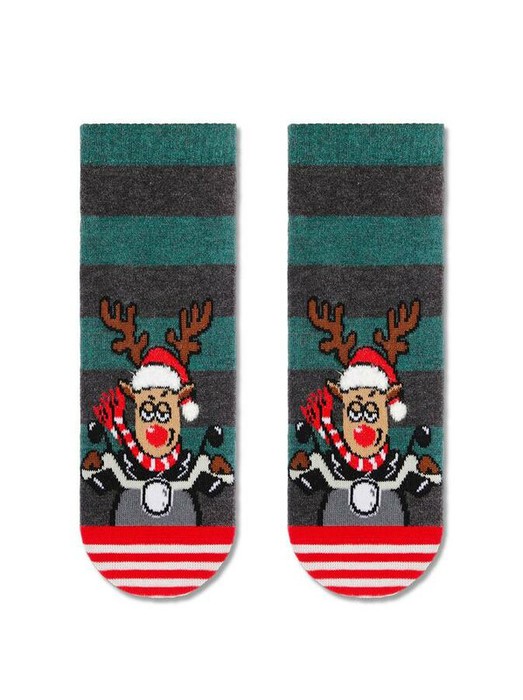 Короткие мужские носки станут оригинальным подарком на зимние праздники для Ваших родных, друзей и коллег. Забавный рисунок с оленем, свежее цветовое сочетание, трендовая полоска - эти носки станут любимыми и отлично подойдут к спортивной и классической обуви. Вам понравятся:-мягкий и эластичный хлопковый материал;-удобная резинка;-долговечный вязаный рисунок.