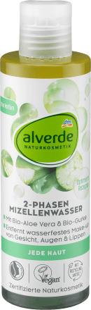 Двухфазная мицеллярная вода с органическим алоэ вера и органическим огурцом от Alverde NATURKOSMETIK обеспечивает оптимальное очищение и уход для любого типа кожи благодаря своей двухфазной формуле с мицеллярной технологией. Кожа освобождается от излишков кожного сала и аккуратно удаляется даже водостойкий макияж. Содержащиеся активные ингредиенты глицерин и бетаин могут поддерживать баланс влаги в коже и тем самым защищать ее от высыхания. Рецепт без микропластика и водорастворимых, чисто синтетических полимеров.