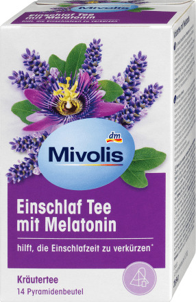 Чай для сна Mivolis с мелатонином сочетает в себе цветочную ноту лаванды с сильной ароматной валерианой, нежной мелиссой и пассифлорой. Мелатонин – гормоноподобное вещество, которое также вырабатывается организмом человека и играет важную роль во сне. *Мелатонин помогает сократить время, необходимое для засыпания.