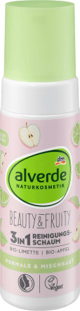 Очищающая пенка Alverde NATURKOSMETIK 3in1 Beauty & Fruity сочетает в себе 3 функции за один прием. Формула с экстрактом лайма и яблока из сертифицированного органического хозяйства мягко, но тщательно очищает кожу от частиц загрязнений окружающей среды, макияжа и излишков кожного сала. Он также удаляет водостойкий макияж. Ваша кожа очищается, тонизируется и освежается, не пересушивая ее. Идеально подходит в качестве подготовки к последующему уходу. Рецепт без микропластика и водорастворимых, чисто синтетических полимеров