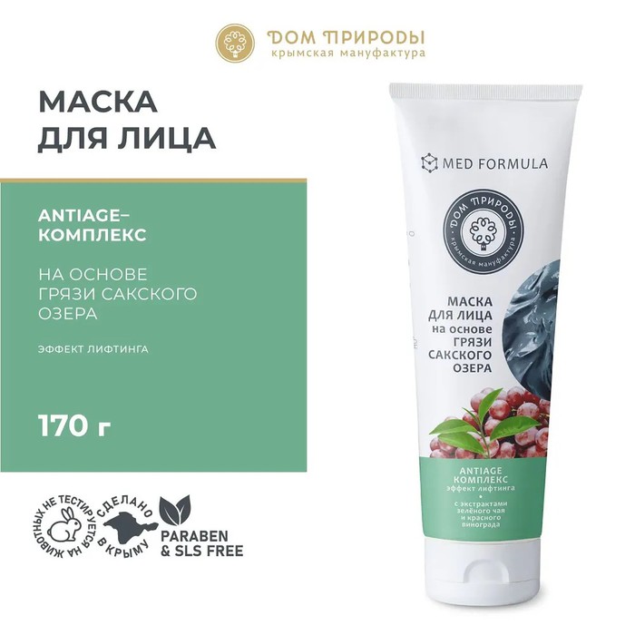 Антивозрастная формула для лица и зоны декольте на основе Cакской грязи с янтарной кислотой, питательными маслами, экстрактами зеленого чая, красного винограда, земляники и витамином С рекомендована для продления молодости зрелой кожи.