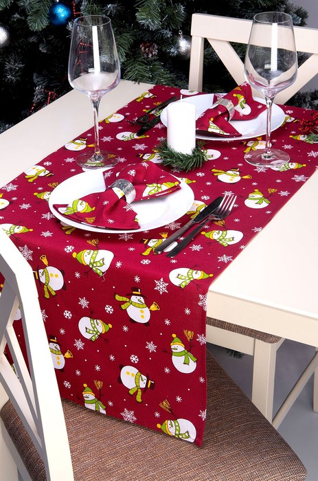 Хлопковая дорожка на стол подходит для столешниц различных форм, с помощью красивой салфетки можно выделить отдельные блюда, зонировать пространство на столе. Дорожка на стол с тематическим рисунком станет идеальным подарком на Новый год и Рождество. Семейные ужины за украшенным столом станут ярким событием праздничного дня.