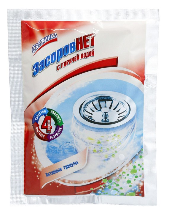 Средство против засоров «Засоров Нет» Свежинка, с горячей водой.