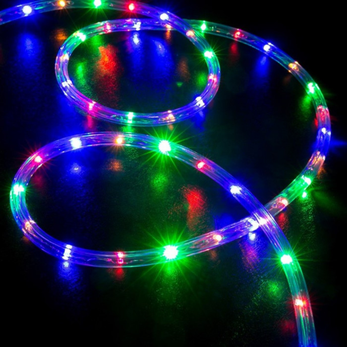 Дюралайт светодиодный в виде шнура. Прекрасно изгибается, можно украшать стены и окна домов, создавать надписи и различные арт-объекты. Длина шнура 7 метров. Работает от сети напряжением 220В Встроенный контроллер для изменения режимов свечения. В одном метре 20 светодиодов разных цветов.1