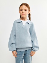 Джемпер из фактурного вязаного трикотажа, декорированный контрастной отделкой и яркой нашивкой спереди. Прямой крой, круглый вырез горловины, длинный рукав. Короткие разрезы по бокам и удлиненная спинка.На ребенке представлен размер 140:- Ширина изделия по линии груди 37 см- Ширина по низу изделия 41,5 см- Длина рукава 51 см- Длина изделия 51,5 смРазница между размерами составляет 1,5 см.