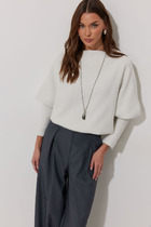 Джемпер без рукавов прилегающего силуэта, выполнен из трикотажного полотна молочного цвета. Характеристики: горловина-стойка, в естественную складку, прямой крой, без рукавов. Длина по центру спинки от края горловины 54 см.
