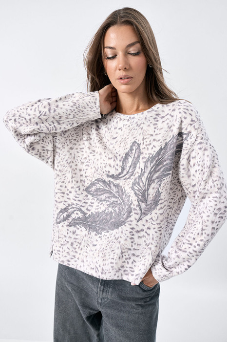 Джемпер женский свободного силуэта изготовлен из мягкого трикотажного полотна. Горловина круглой формы, рукав кроя комбинированный реглан, длинный. Возможно отличие фотографии по оттенку, связанное с разной цветопередачей монитора.