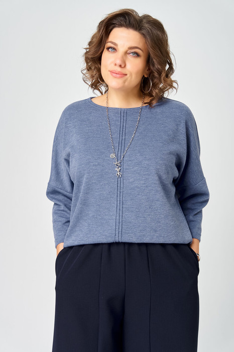 Джемпер женский из приятного к телу трикотажа, свободного кроя с удлинённой спинкой, по полочке имеются декоративные строчки. Джемпер